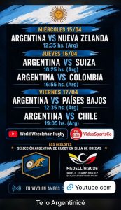 La Selección Argentina de rugby en silla de ruedas, conocida como Los Ocelotes, se encuentra disputando el Torneo Clasificatorio Mundialista en Medellín, Colombia, una competencia clave en el camino hacia el próximo Campeonato Mundial.